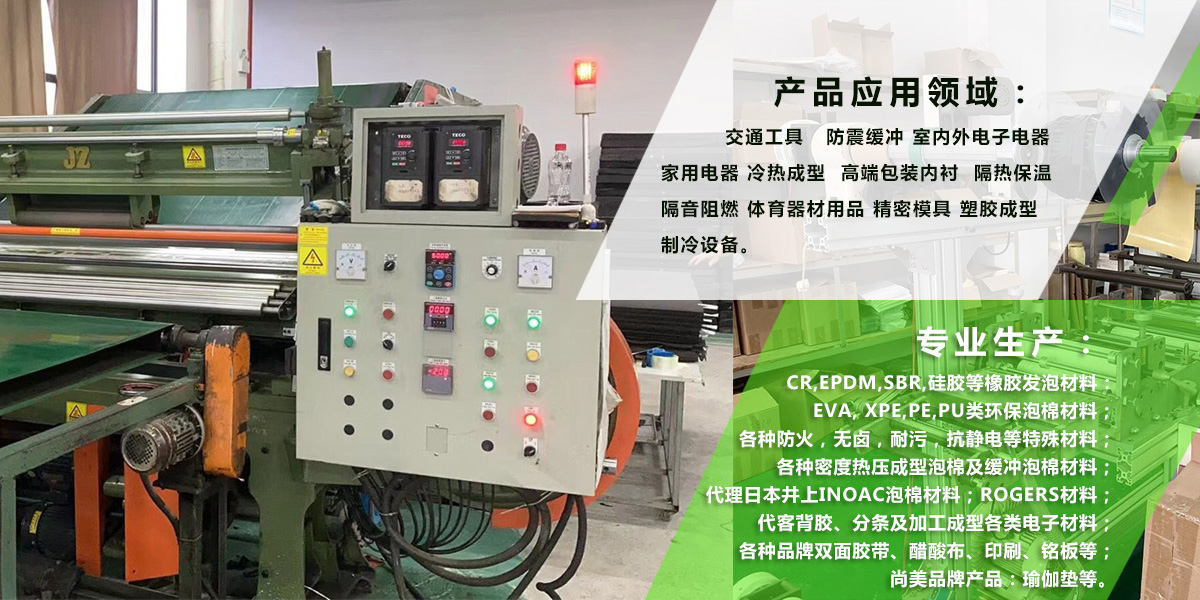 为满足广大客户的不同需求,我司常年备有大量的,EVA,EPDM,CR,TPE,PE,等原板库存。可剖切各种不同的厚度,最薄可提供0.3MM的材料,并且为了方便客户的作业,我司还提供将部分材料,接成卷料,贴胶等配合客户各种不同的要求。为了更好的让客户满意,我司还代理了井上罗杰斯,法国,韩国的部分材料,配合客户使用。